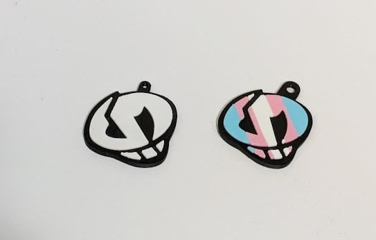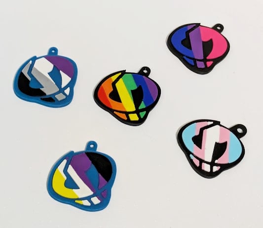 3D-printed Keychains for various symbols and groups! Size varies, usually around 1.5". Made from polylactic acid. Default option sends a random choice.