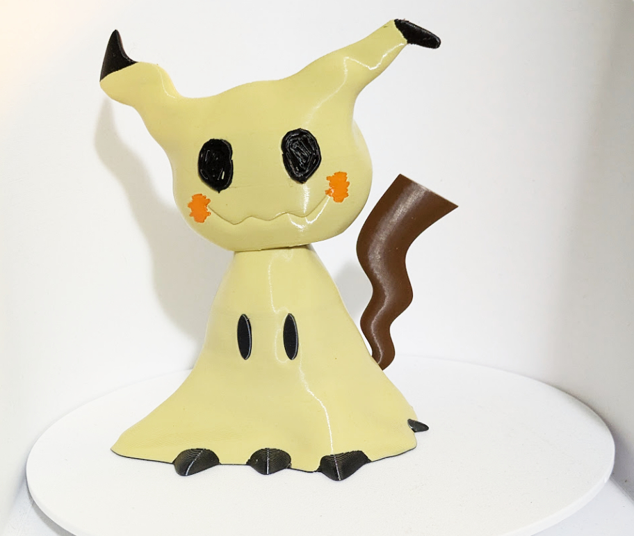 Design-wise I wanted to make it SLIGHTLY more “realistic" (for lack of a better term) with how the head's mouth is more an indentation instead of a zig-zag line all in black. The body is similarly designed, with the shape of the body trying to resemble cloth draped over something else and the little black parts of Mimikyu's true form just poking out more like toes rather than triangles.